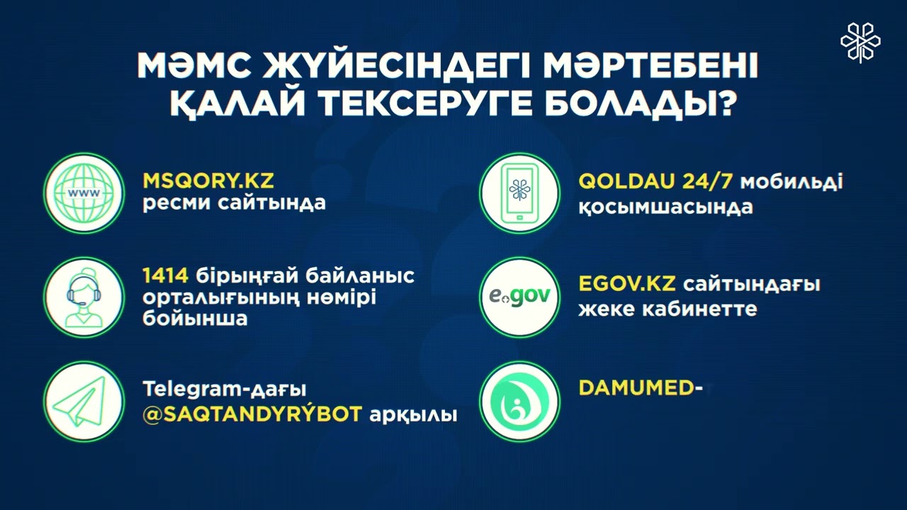 🤳МӘМС жүйесіндегі мәртебеңізді келесі қосымшалар арқылы тексере аласыз: