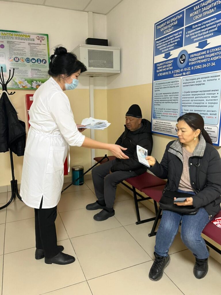 2025 жылдың 19 қараша күні Талдықорған қалалық емханасының СӨС мамандары емхана келушілері арасында МӘМС-тің артықшылықтары туралы түсіндірме жұмыстарын жүргізді. Ақпараттық материалдар таратылды.
