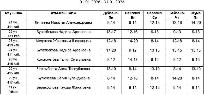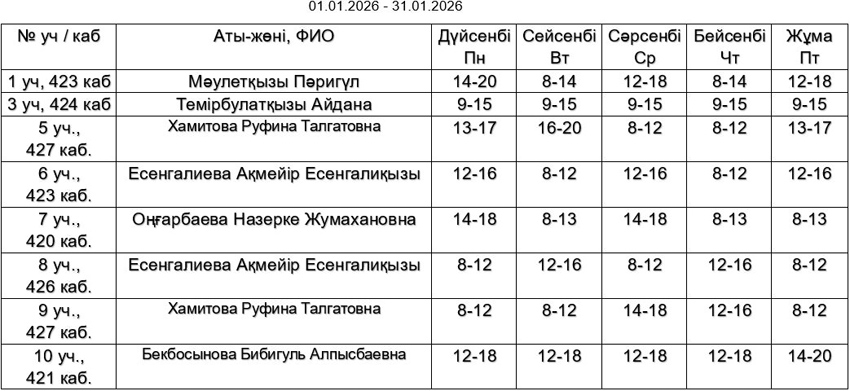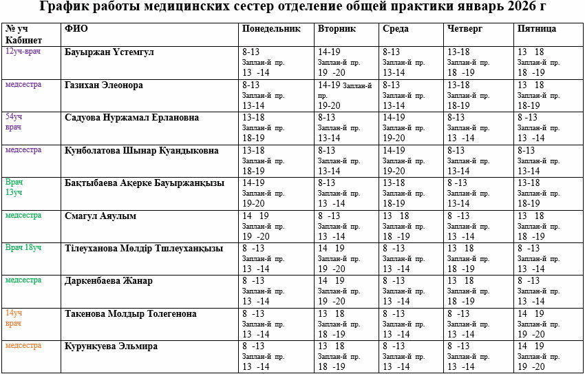 График приема ГКП на ПХВ “Талдыкорганская городская поликлиника” области Жетісу